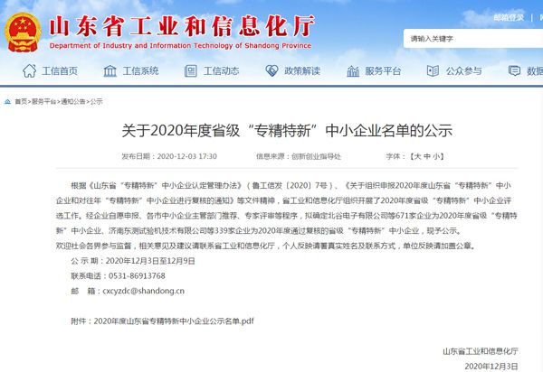根據(jù)《山東省“專(zhuān)精特新”中小企業(yè)認(rèn)定管理辦法》(魯工信發(fā)〔2020〕7號(hào))、《關(guān)于組織申報(bào)2020年度山東省“專(zhuān)精特新”中小企業(yè)和對(duì)往年“專(zhuān)精特新”中小企業(yè)進(jìn)行復(fù)核的通知》等文件精神,省工業(yè)和信息化廳組織開(kāi)展了2020年度省級(jí)“專(zhuān)精特新”中小企業(yè)評(píng)選工作。經(jīng)主管部門(mén)推薦、專(zhuān)家評(píng)審等程序,確定我公司為2020年度省級(jí)“專(zhuān)精特新”中小企業(yè)。